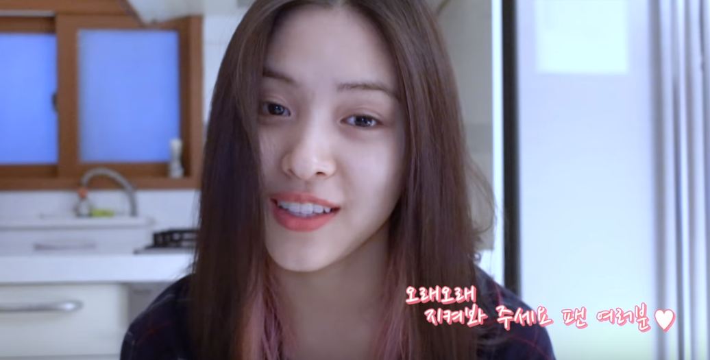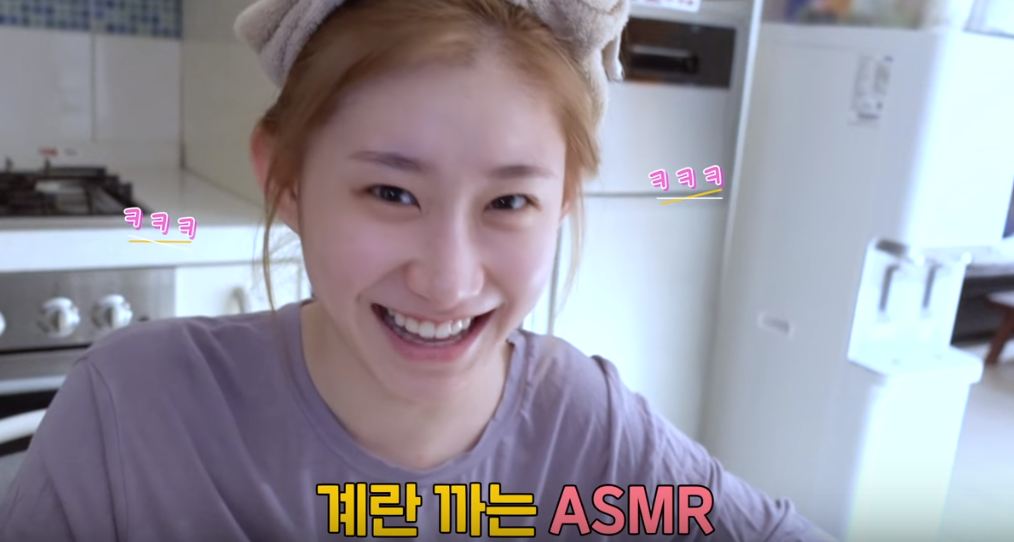 影片中,只見禮智穿著簡單的素色T恤、嘴唇擦上薄薄冷櫻色的唇蜜,看似在廚房前面進行拍攝,頭髮側旁分露出甜美的笑容,素顏的模樣驚呼眾人,白皙的皮膚也相當的美;另一名成員彩領,則是穿著紫色T恤面對鏡頭,特別的是,露出額頭紮起乾淨的馬尾,猶如鄰家女孩風,皮膚可是超級水嫩,臉頰兩側透出一點粉紅光暈,高挺鼻樑配上濃眉大眼,模樣相當清秀。