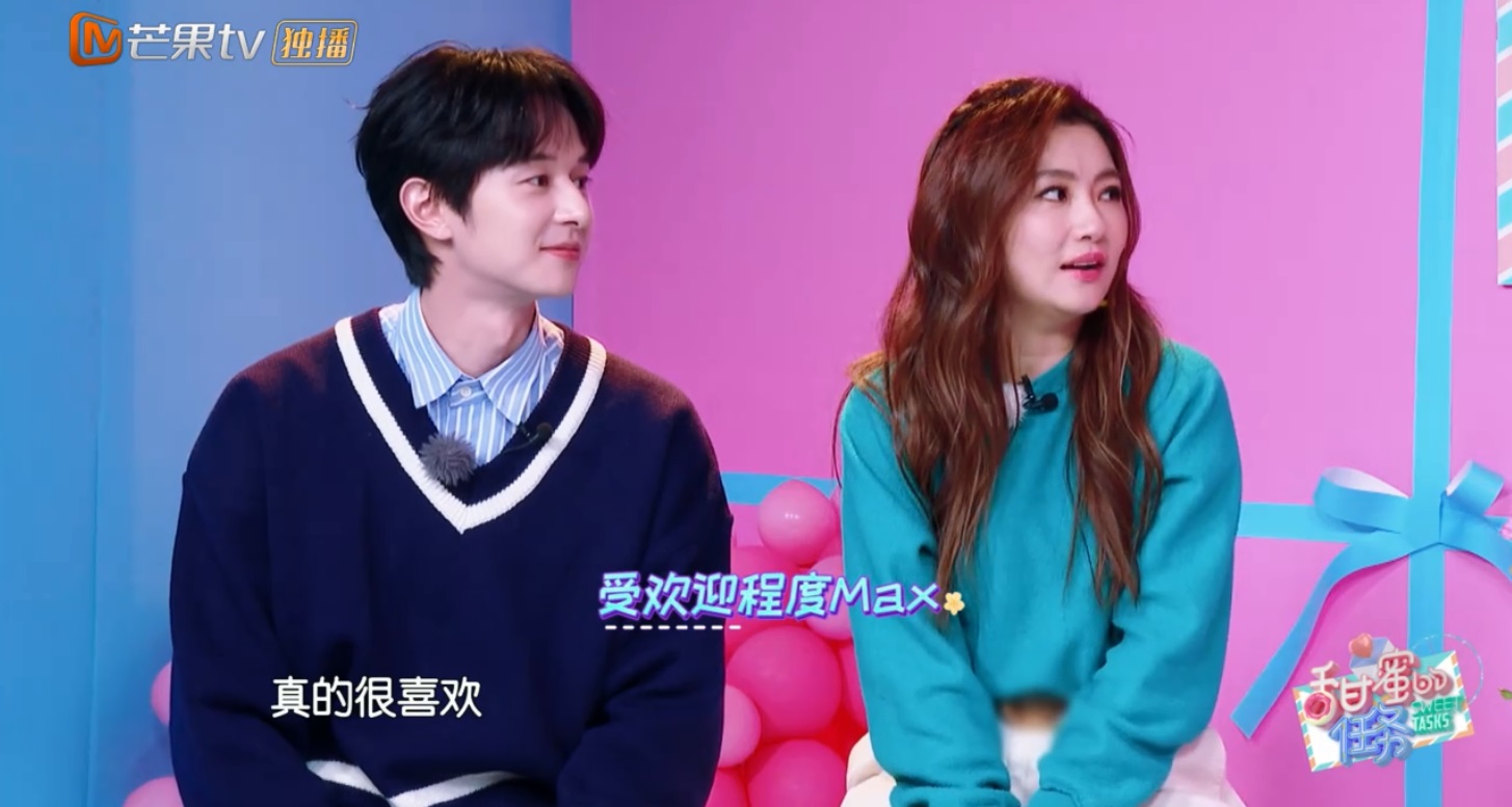 在節目的最後,主持人也特別幫CP粉們謀取福利,讓兩人互相對視10秒,而兩人對視時也而笑非常開心,更加碼合比愛心,畫面相當甜蜜充滿了粉紅泡泡。