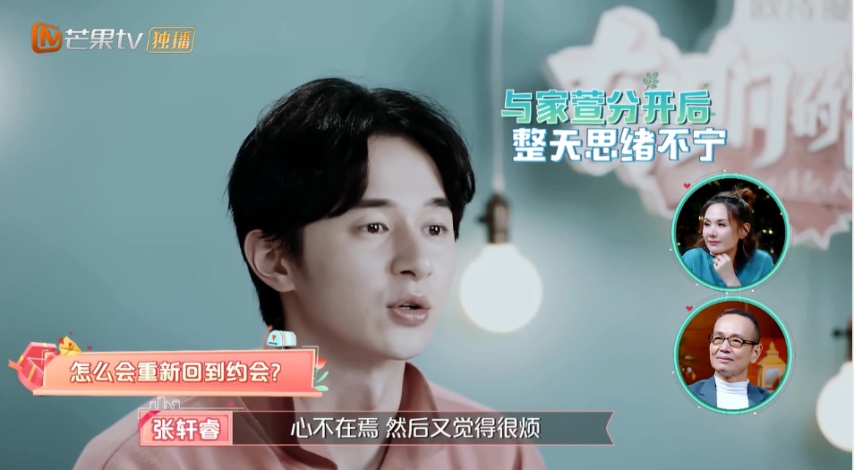 張軒睿表示,自己選擇離開後的不久,就覺得整個狀態都不對,感覺心理留下了許多遺憾,因此便私下聯絡Selina,約她出來見面。兩人在私底下見面時,相談甚歡,張軒睿透露,他當場就詢問Selina「可不可以再給我一次機會」在雙方達成共識後,便決定要繼續約會。張軒睿也霸氣的說,希望兩人這次的關係,能夠進展到戀愛的階段,大方表明對Selina的情感。