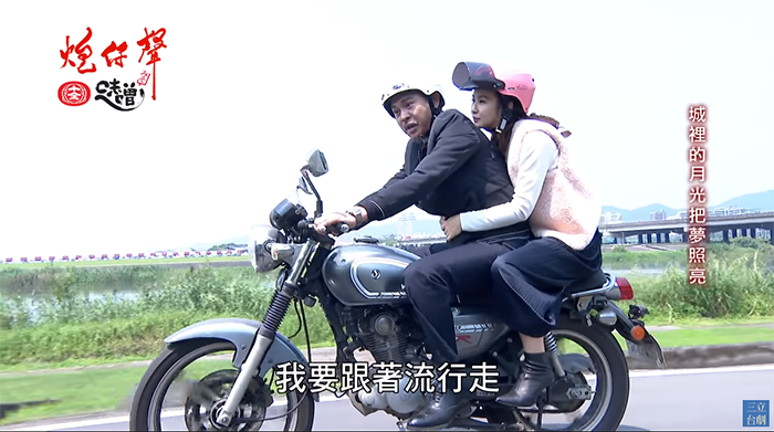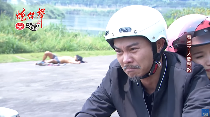 當時韻如坐在爸爸的機車後座,小心翼翼地環抱著父親,靠在父親的肩膀上默默落淚,背景音樂還放著《城裡的月光》,畫面和氛圍都相當感人催淚,也惹哭了不少觀眾。只不過,當機車呼嘯而過,路邊卻突然出現一個只穿著內褲的半裸男子,用毛巾遮住半張臉,躺在路邊陶醉的曬日光浴。