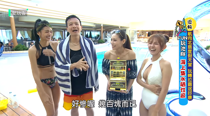 遊戲過程,鮪魚必須不停在泳池邊彎腰取水,不過就在她跪坐在泳池邊取水時,小鐘著急大喊:「徐瑋吟妳的那個要小心一點!胸部都看到了!」奔跑過程中鮪魚頻頻瀕臨走光,來回奔跑時她不停地用手遮住胸部,還忍不住大喊:「奶快掉出來,好累喔!」事後節目組也用小花替她上後製。