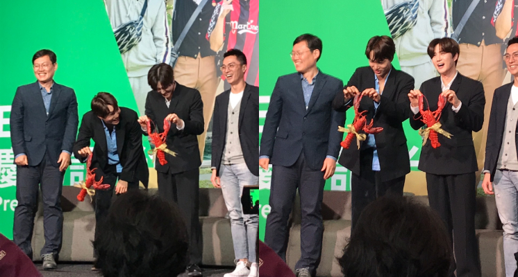 韓國大勢男團EXO睽違五年時間再度推出團綜《EXO的爬梯子世界旅行》第二季,此次更到南台灣的高雄和墾丁取景,而團綜在1月於LINE TV開播以來收視率始終穩坐綜藝榜冠軍,為此,隊長SUHO、KAI也來到台灣參與慶功記者會,記者會上,兩人也開金口說台語甚至玩起台語小劇場,而KAI作為團中舞蹈擔當,說起台語「算便宜點」,身體還跟著語調wave,讓現場粉絲陷入瘋狂。