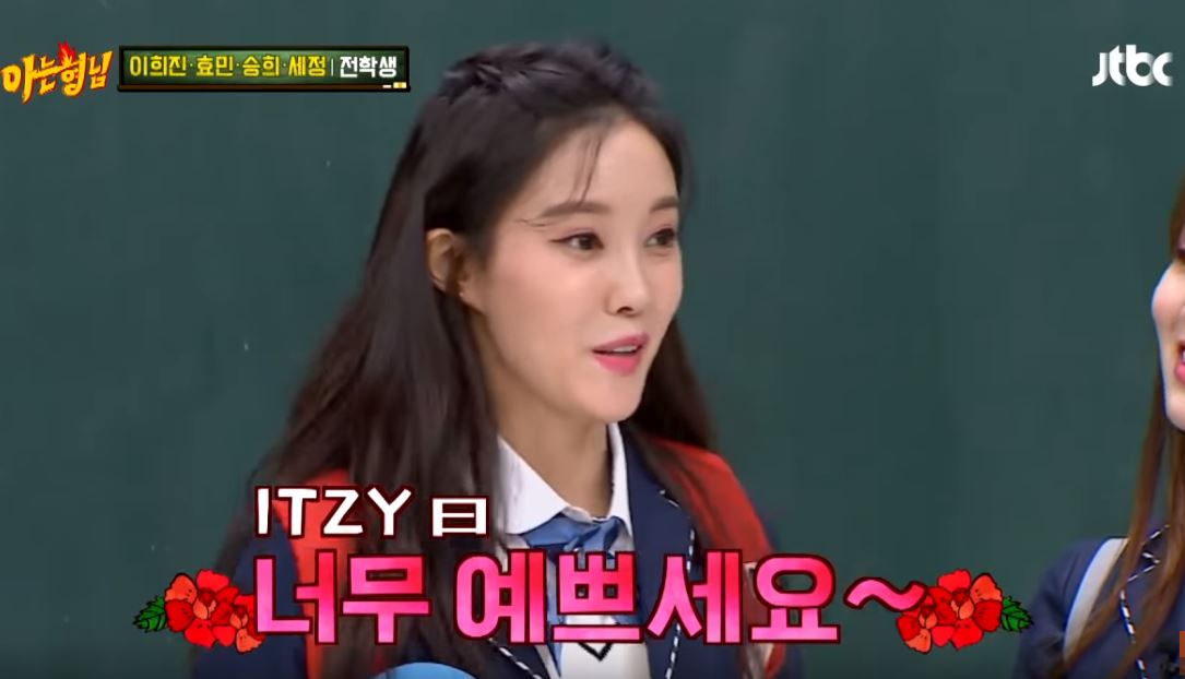 不過話鋒一轉孝敏則提及今年2月才剛出道的女團ITZY,因為和他同月推出新作品而有機會在音樂節目上碰頭,他回憶起當時仍然不敢踏出休息室,不過ITYZ相當有禮貌,並表示「ITYZ到我的休息跟我打招呼,他們還說到我本人真的很漂亮」。對此主持人希澈則評論孝敏這是在捧自己嗎,姜虎東則機智的開玩笑表示「他不是在自捧,他是說前輩這樣跟他打招呼讓他很尷尬」,不過孝敏則反駁「真的沒有在自捧好嗎」。