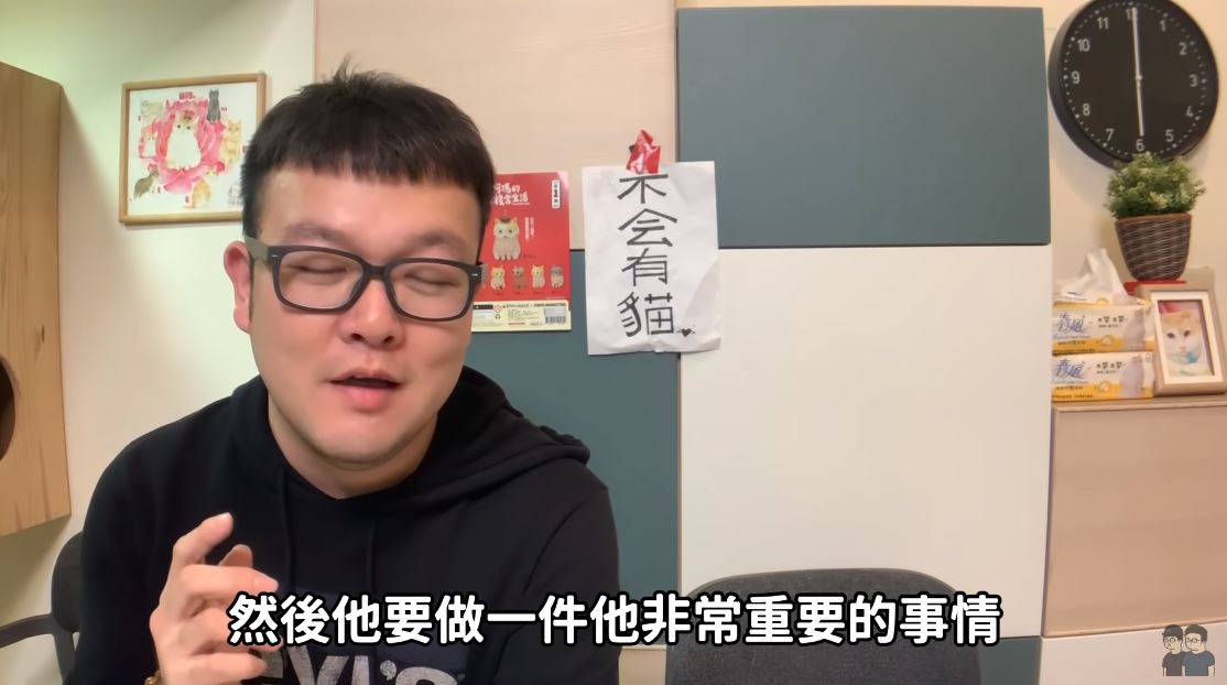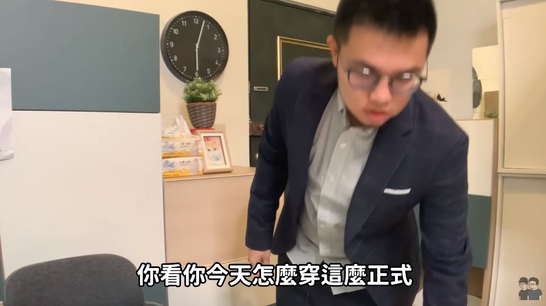 影片一開場,「志銘」便解釋「狸貓」有事在外,因此影片的開場只有自己一人,更神秘的說道「他(狸貓)要做一件他非常重要的事情」,並表示要等候「狸貓」回到工作室,不久後就見「狸貓」身穿深藍色的格紋西裝外套,行色匆匆的回來,並且相當訝異於「志銘」正在拍攝影片,而「志銘」則抓準時機的問道「你看你今天怎麼穿這麼正式」。