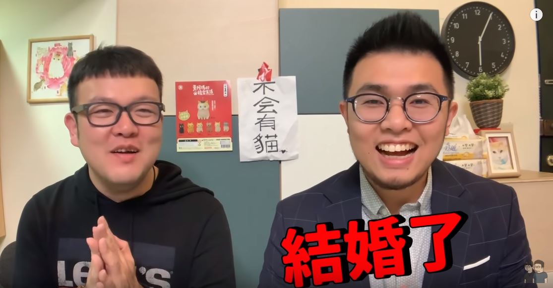 YOUTUBER「志銘」與「狸貓」是知名的貓奴,原本是大學同學的兩人,在因緣際會下收養了第一隻貓「黃阿瑪」,後來兩人又一起成立了影像工作室,之後又陸陸續續養了六隻貓,因而有了「黃阿瑪的後宮生活」,起初只是在臉書粉絲團上分享貓咪們的生活點滴,後來兩人又轉戰經營YOUTUBE頻道,吸引了許多喜愛貓咪的網友們熱切關注。29日,由「志銘」發佈了一支〈狸貓要結婚了〉的影片,讓許多網友議論紛紛。