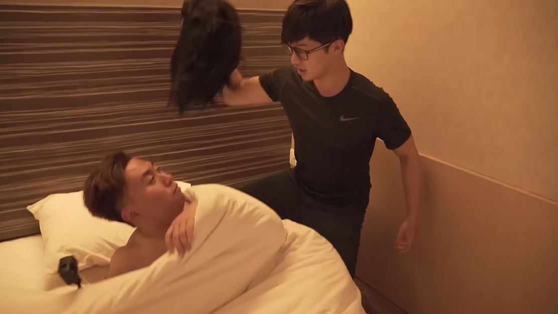 隨後,「玲玲」和「大神」更在寢具區徘徊許久,讓「達達」相當難受的表示「他們一起看床單喔!才在一起多久,天啊,他們來選床單欸」語氣中帶著不可置信和難受。後來,兩人又跟隨著「玲玲」和「大神」驅車前往他處,一到目的地,「達達」便敏銳地發現情狀不對,便大喊「哇他們要去酒店」,然後就相當氣憤的下車,衝往酒店,而一旁的大牛則不斷地安撫著「達達」要他冷靜一點。