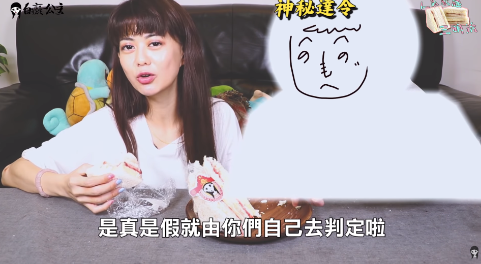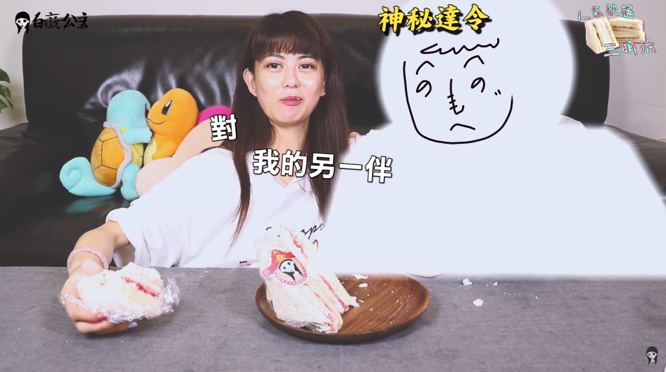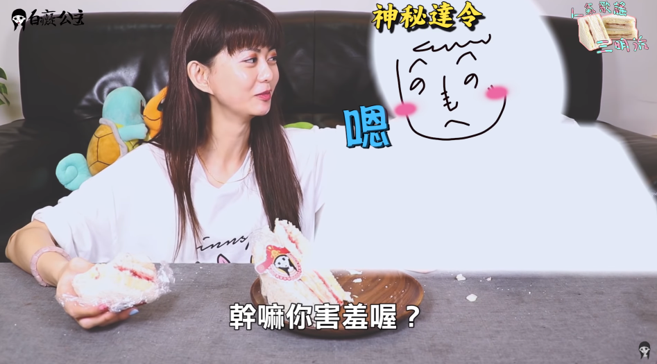 白癡公主近日推出最新一集的「小資少女不專業自理餐時間」,要教導大家製作「人氣歌謠三明治」,她更大方坦言「做給誰吃呢?My honey, my darling, 我的七辣,我的馬子」,說完還笑了一下表示:「好害羞喔」。
