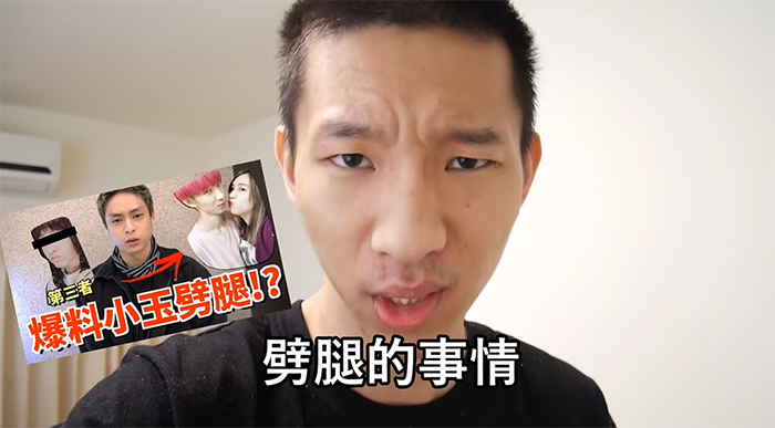 放火昨發布影片表示自己跟小玉已經在一起九個月了,看見小玉認愛笑笑之後非常難以接受,決定公開爆料小玉劈腿這件事,昨(四月一日)小玉也在自己的頻道中上傳新片《我們分手了》,其中他表示放火出來指控他劈腿之後,笑笑也不再信任他,「我們確定是分手了」。