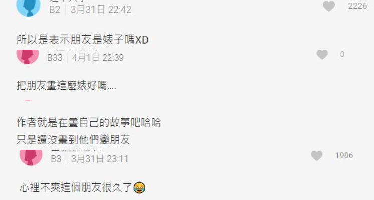 網友對比兩張照片發現,漫畫中的秀貞擁有比任朱靜更好的身材,黑色長直髮並身穿緊身背心,好身材嶄露無遺,和作者在IG限動中分享的好友照中,同樣的髮型和衣著,甚至是左下眼角的黑痣類似程度引起網友猜測喵嗚的別有用心並紛紛說到「所以是錶是朋友是婊子嗎」、「心裡不爽這個朋友很久了」、「千萬不要惹漫畫家」,但也有網友出面澄清是喵嗚的好友自己cos秀貞的,也進一步說到兩人左下眼角的痣就是畫出來的。