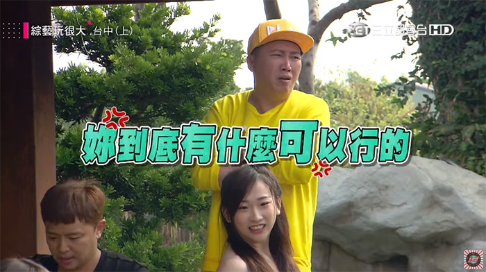 《綜藝玩很大》最一播出一集前往台中錄影,一行人在冷泉區進行闖關,「4大女神」換上清涼的性感泳裝,人氣YouTuber蕾菈連身的低胸黑色泳裝讓觀眾們大飽眼福,只不過在闖關時她卻失誤連連,前面幾關接連失敗,到了平衡關卡又頻頻卡關,讓趙正平忍不住怒吼:「你到底什麼可以行的?!」瞬間氣氛超尷尬。
