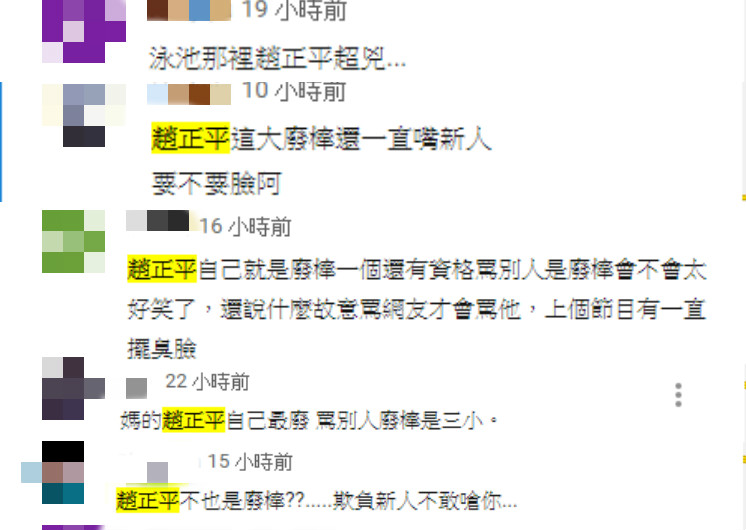 雖然蕾菈第一次上節目沒有表現的非常好,但趙哥指著她大罵,讓許多網友看不下去,紛紛直說:「看玩很大就讓趙哥繼續封殺玩很大好了,這樣對自己節目也好」、「趙可以不要再來了嗎?明明自己表現也很爛,憑什麼一直罵隊友」、「趙哥這集一直罵隊友,把氣氛弄得很尷尬,覺得不是很好。脾氣是應該要控制一下了」、「泳池那裡趙正平超兇…」