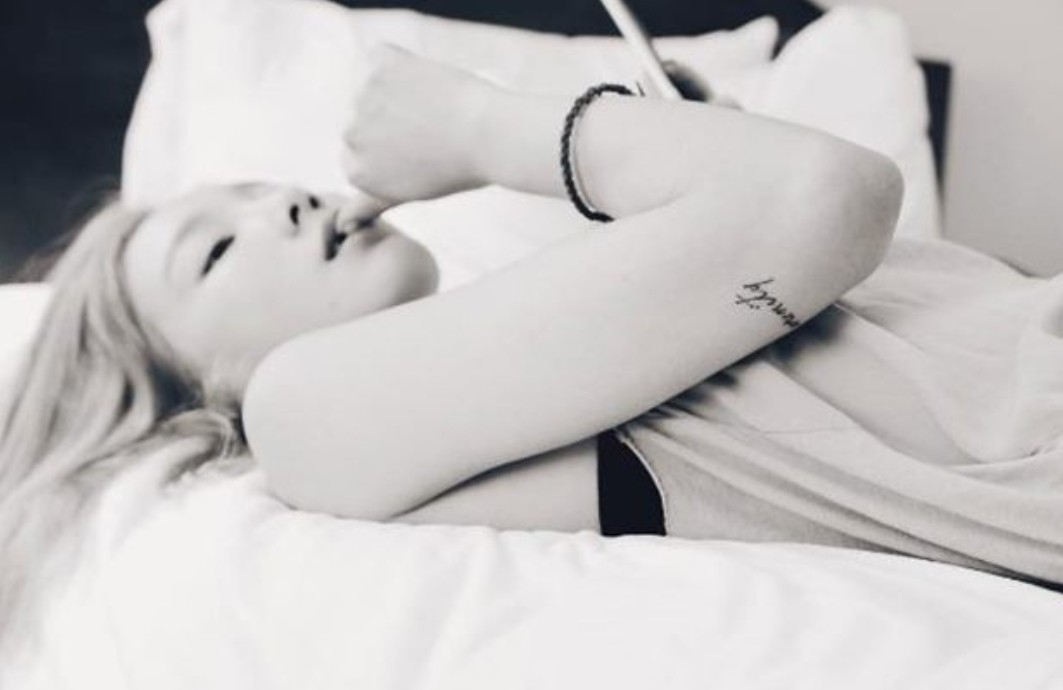 最後則是在右邊手肘的上方也有一串英文字母「SerenityTY」,其中英文單字「serenity」其實就有「安靜、平穩」的意涵,而大寫的英文字母「TY」則是太妍名字羅馬拚法「Taeyeon」的頭兩個字,因此該刺青被外界解讀是太妍對自己的期許。