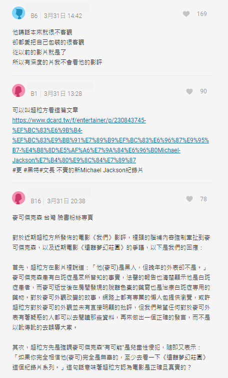此外,超粒方的爭議被網友放上Dcard之後,也引起了諸多討論,有網友認為超粒方一直以來的評論都不甚客觀,更有網友貼出臉書社團「Michael Jackson Taiwan - 麥可傑克森 臺灣」的貼文,讓輿論越滾越大。而後來超粒方雖然沒有刪除影片,不過疑似已經將爭議的留言刪除!