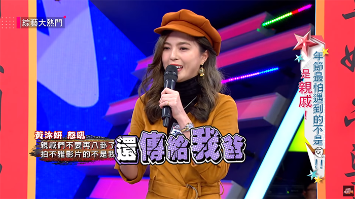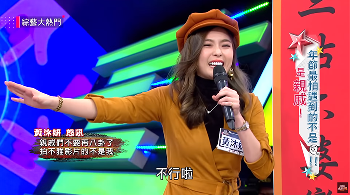 有親戚傳給她看,甚至還有親戚直接把影片傳給她爸爸:「沐妍是不是最近缺錢?」讓小豬相當困擾。吳宗憲聽了忍不住開玩笑:「還是你嬌喘一下我們比對」讓全場來賓笑翻,小豬還笑回:「不行啦!這不能播啦!」