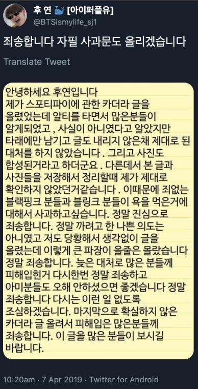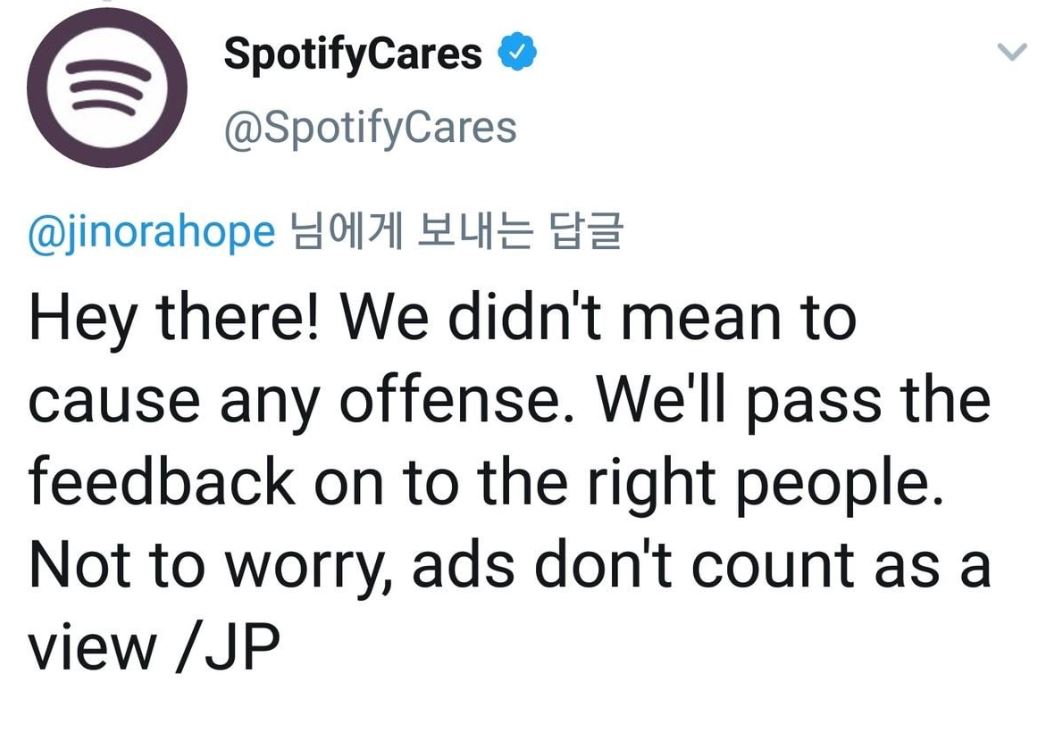 對此,音樂平台「Spotify」也在官方推特同步發出聲明,並說到「我們不希望造成任何誤會,已經著手處理外界的反應」,不過韓網仍無法買單表示「雖然不知道他是不是第一個造謠的人,不過這樣散播謠言很不妥」、「BLACKPINK因為這件事無辜被討厭」。