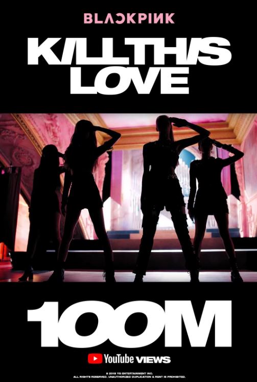 5日,韓國女團BLACKPINK以全新專輯《Kill this Love》回歸,而韓國時間7日的下午2時15分,同名MV在YouTube頻道上突破1億的點閱人次,只花了兩天14小時又15分鐘就達成紀錄,成為韓團中最快達成紀錄的藝人。此外其破億速度,超越了過去另一男團防彈少年團去年8月發行的歌曲《IDOL》,當時是以4天23小時又20分鐘達成目標,更可能是YouTube開站以來最快達成這個數據的影片,不過這項紀錄還沒有被YouTube官方證實。