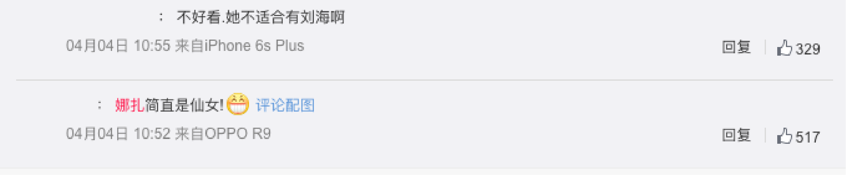 多數粉絲在直播中留言,希望娜扎能夠換回原本的髮型,隨後,娜扎也在直播中解釋:「這是假髮,並沒有真的換髮型。」,讓不少粉絲鬆了一口氣。過去娜扎也有用短髮的造型出現過,不過第一次以齊瀏海的造型出現,還是頭一遭!