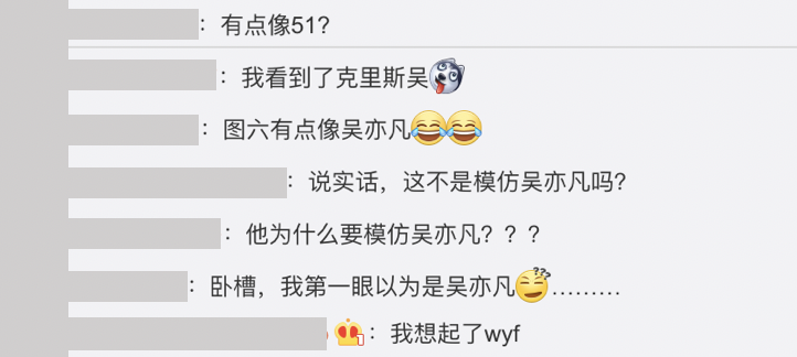 過去蔡徐坤有段時間的造型是在髮尾的地方留了一大撮頭髮,而這個造型在當時也被網友們認為他在模仿GD,而這次的造型他將頭髮燙捲,並把瀏海往上梳,也被網友認為和吳亦凡的造型十分相似。