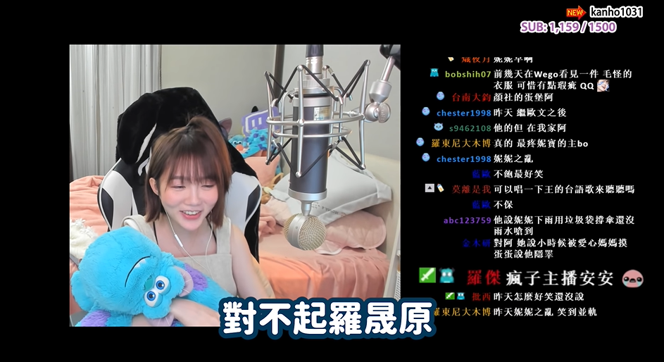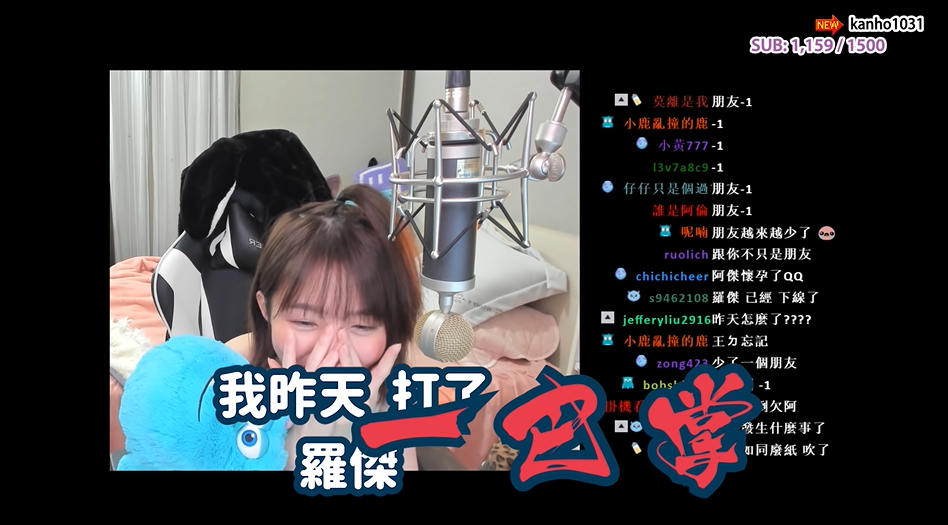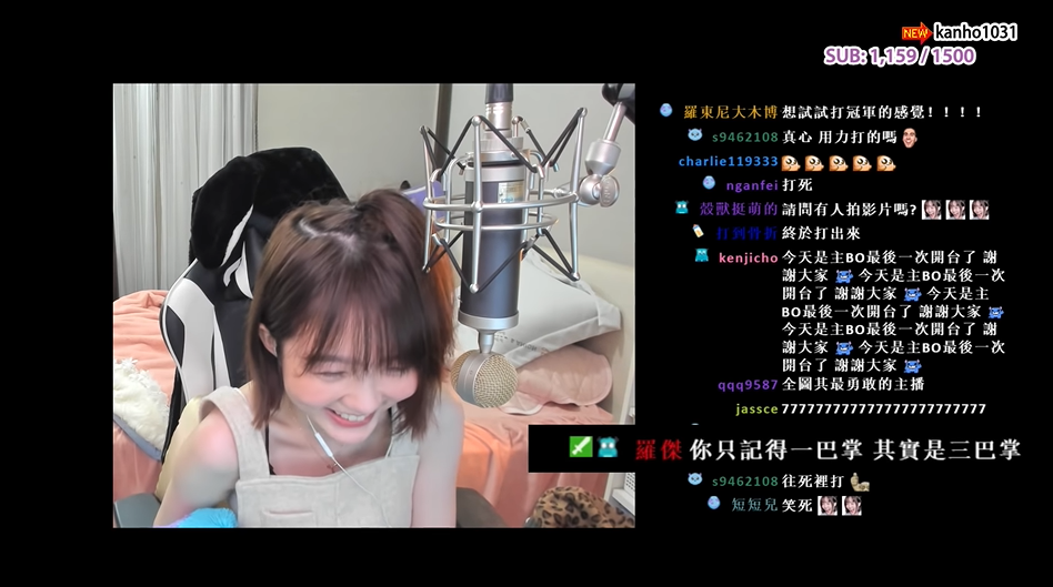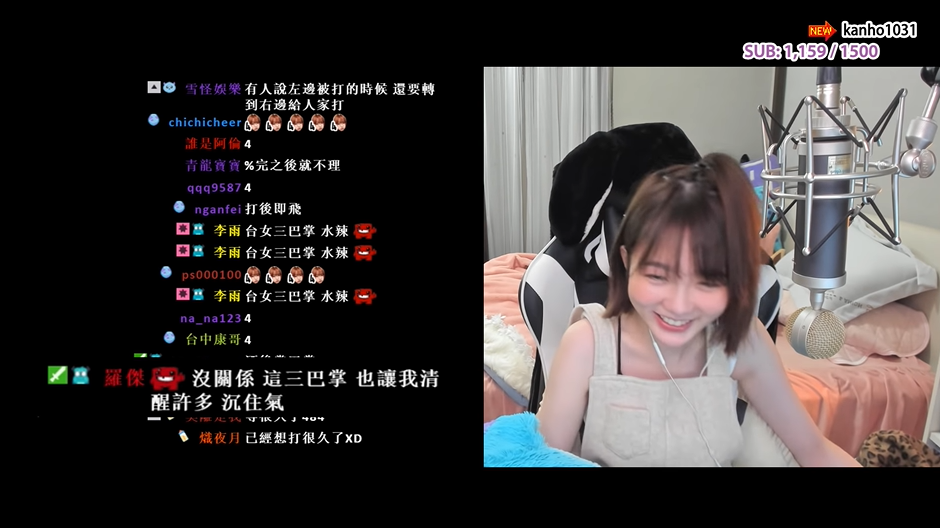 昨日妮妮上傳最新的實況精華,影片開始便可以看到羅杰打上:「瘋子主播安安」,讓妮妮一看見便崩潰表示:「對不起羅晟原,我今天不敢開台,就是我很怕遇到你」,她也接著向觀眾解釋自己酒後誤事:「我昨天打了羅杰一巴掌」,而羅杰則又在留言處回覆:「你只記得一巴掌,其實是三巴掌」,讓妮妮聽了尷尬詢問:「是連續嗎?」