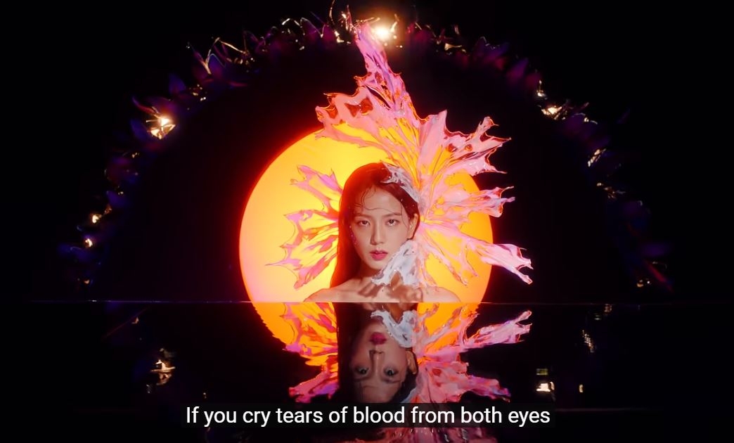 此外,該首歌曲中也唱著「We’re all making love」、「That kills you inside, yeah」,顯示愛情毀了兩人的內在,因此MV中也安排很多代表「自我」的象徵意涵。像是Jisoo半身映照出另一個自己的畫面,最外圍的火光其實就是一個眼睛的圖樣,而Rose駕駛的跑車,其車牌也寫著英文「Ego」翻成中文代表自尊。