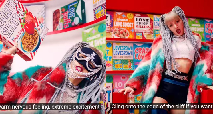 另外成員身上的造型也藏了不少寓意,包括Jennie吊鋼絲坐在巨型天鵝上方出場,而另一幕中他放下長捲髮頭上戴的髮飾也是天鵝圖樣,此外Lisa站在充滿穀片的背景前方,其實產品包裝上也都有不少和歌名呼應的字眼,包括「Love Crisp Killer」、「Sweet Test」、「Sweet killer」,或是頭上的頭飾也有英文字母「L」,而Rose的皮衣外套上則有寫著兩個單字「tomorrow」和「arise」,似乎意味著明天還值得期待。