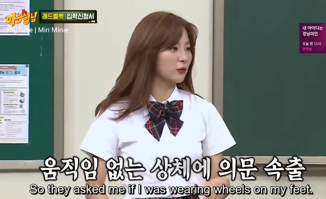 事實上,去年Red Velvet現身綜藝節目《認識的哥哥》時,也曾經公開表演這項「特殊才藝」。節目中,瑟琪被要求扮演貞子,從節目架設的教室走廊中「飄過」當時不僅瑟琪自己都笑場,就連目睹這一切的主持人和成員都感到不可思議,而瑟琪也在節目中透露沒想到他的走路方式會引起注意,也自嘲「大家都懷疑我的蔣下是不是裝了輪子」。