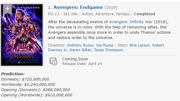 不過美媒《IMDb》就預估最終票房,今年《復仇者聯盟:終局之戰》有望在全球取得 22.5 億美元的票房成績,擠下票房佔據第二的《鐵達尼號》,反觀台灣影城將在12日開賣,影迷們也得有心理準備。
