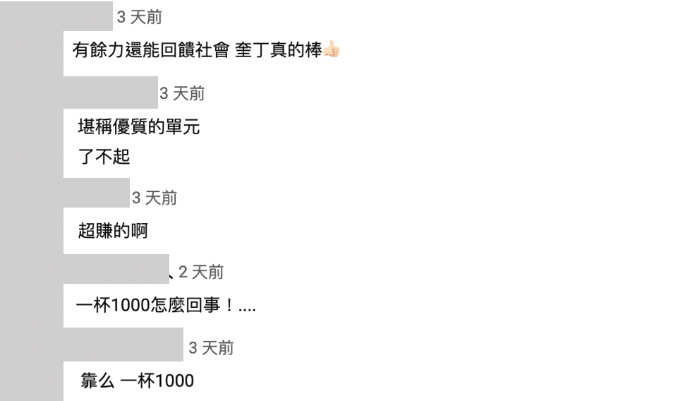 奎丁也在留言處寫下:「屌薛大家一筆超爽.......欸不對啦,第一次當一日店長真的超緊張的,謝謝你們過來找我~~~~~~沒有你們,沒有這支影片的誕生」,對於粉絲自掏腰包高價購買她特調的飲料,讓奎丁感到相當感動,而網友也紛紛在底下留言:「有餘力還能回饋社會 奎丁真的棒」、「超賺的啊」、「堪稱優質的單元 了不起」、「一杯1000怎麼回事!」