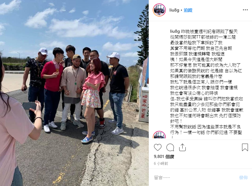 否希今(11)日在IG中發文,表示自己被周刊記者跟了一整天,「從開瑪莎到開TT都被錄的一清二楚」,更表示自己最後來被訪問。不過沒等新聞出爐,他則自爆:「我丟菸頭、我違規轉彎、我超速」,還表示倘若這件事成為大新聞,就代表他「成為大人物」,他坦言自己私下跟一般人沒兩樣,同樣也會犯錯,「我也說過很多次,我會抽煙、我會違規,我也會有沒公德心的時候」,不過因為身為公眾人物,他也為此道歉,「我也不知道何時會報出來,先打個預防針吧!」