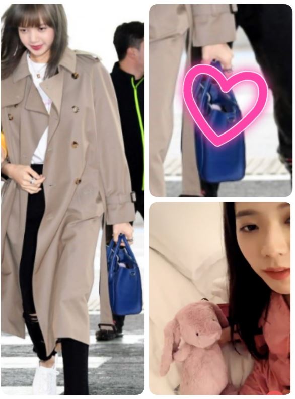 9日,BLACKPINK現身機場準備飛往泰國演出,而成員私下的好感情時常可以在機場中被發現蛛絲馬跡,當時鏡頭就捕捉到提著一個藍色手提包的Lisa,被眼尖的粉絲發現,包包裡頭疑似藏了粉色玩偶,拿出過去Jisoo曾經拿著合照的兔子比對之下,似乎非常相似,因此就被粉絲笑稱「這是Lisa要Jisoo黏著他的小伎倆」。