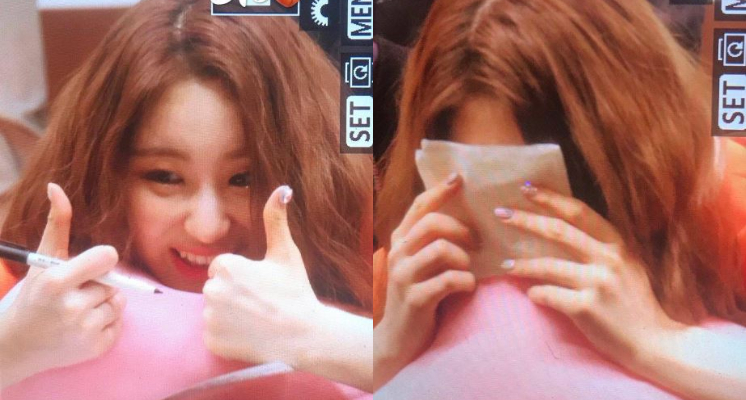 而當天粉絲一個個和成員互動,其中彩演似乎想拉近跟小女孩的距離,途中還特別把臉湊到桌子最前端,接著更豎起拇指比了「讚」的手勢,全程面帶微笑的彩演行為舉止展現親民作風,不過不曉得是不是因為被粉絲的支持感動,彩演在見面會途中忍不住哭了起來。
