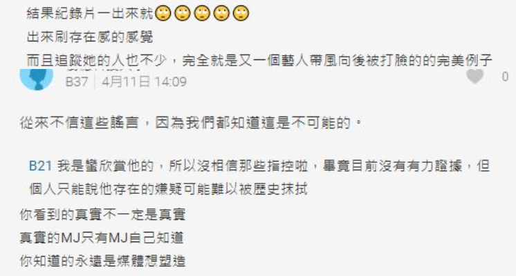 麥可傑克森在生前總共歷經了三次的孌童指控時間點分別是1993年、2005年和該紀錄片兩位男角於2013年提出的控訴,事實上經過法律訴訟雙方不是以金錢和解就是以無罪定案,早就已經還給麥可傑克森「清白」,因此此次紀錄片一出才會引起外界髮指,如今歐普拉也親自將訪問影片下架,對此台灣網友則表示「這就是藝人出來帶風向又被打臉的例子」、「真實的MJ只有MJ自己知道