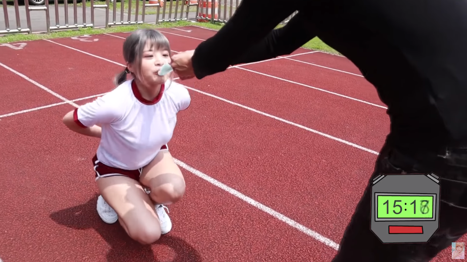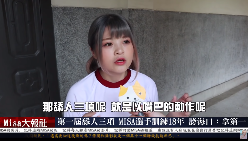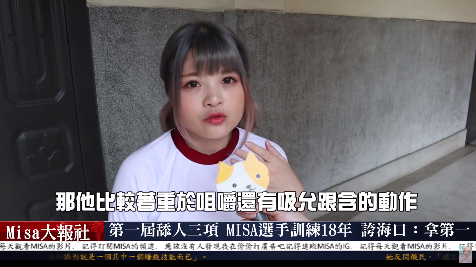 米砂昨(10)日發布新片,其中她故意將鐵人三項諧音「舔人三項」演示出來,更搞笑用日本綜藝的方式拍攝,在比賽開始之前,還有一段訪問畫面,一本正經講幹話模樣讓粉絲看了紛紛笑翻。而這支影片中,她也親身嘗試了舔人三項,也就是青蛙跳吃冰棒、用舌頭雕塑冰淇淋、用嘴巴接煉乳等三個大尺度挑戰,最後畫面也果真十分引人遐想。