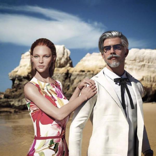 創辦人肯德基爺爺怎麼會一瞬間變成了性感男模呢?原來照片中這位並不是真正的模特兒,而是肯德基利用 CG 合成的虛擬人物,原本我們看慣的肯德基爺爺,一瞬間就變成了火辣的肯德基哥哥。