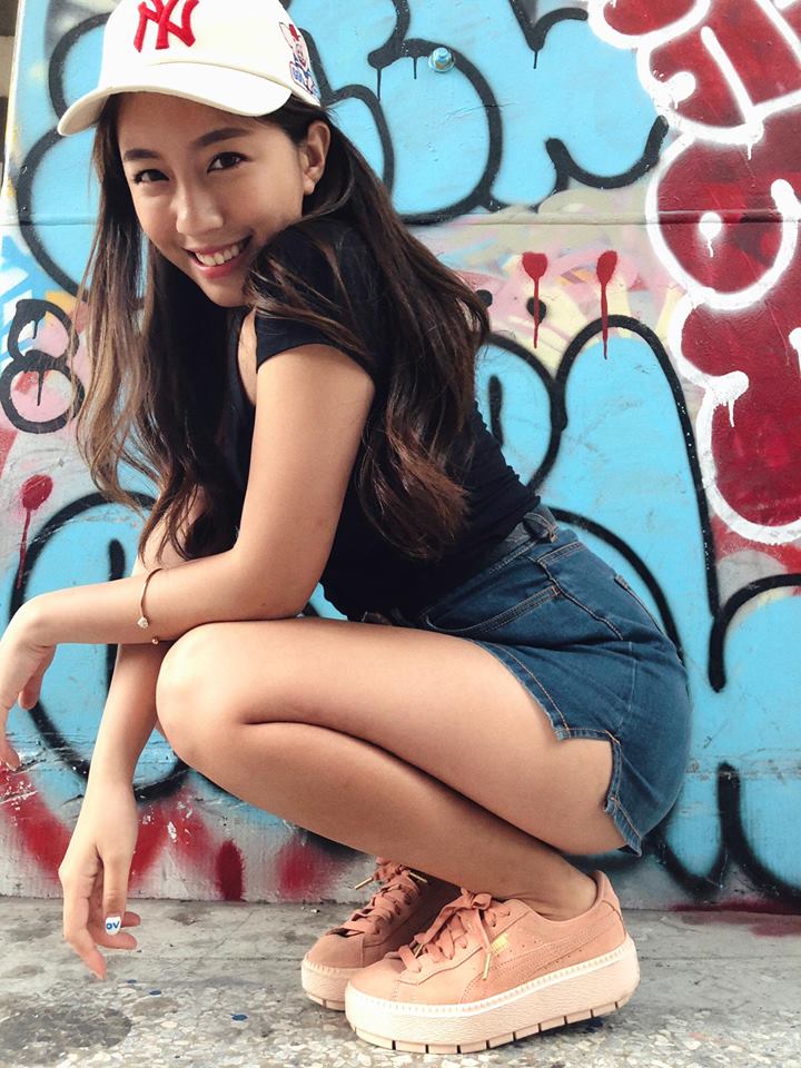 「解婕翎」坐人行道拍美照!超短熱褲包不住「屁股蛋全露」 網看傻:太短了啦!!