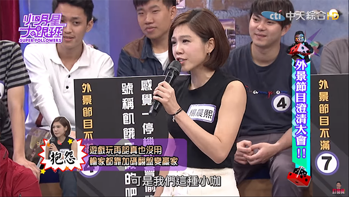 但楊晨熙不甘示弱,認為玩遊戲的隊員加碼付2千元就算了,就連當時的關主「珍珍」無尊也要掏錢,所以不管哪一隊無尊都得自掏腰包付2千出來。「憲哥現在你當關主了,你是不是要拿更多出來!」不過吳宗憲開玩笑說:「沒有,我就不拿了,我就不再玩現金了!」還說「不然以後我們就參加《飢餓遊戲》好了!」讓現場來賓笑翻。