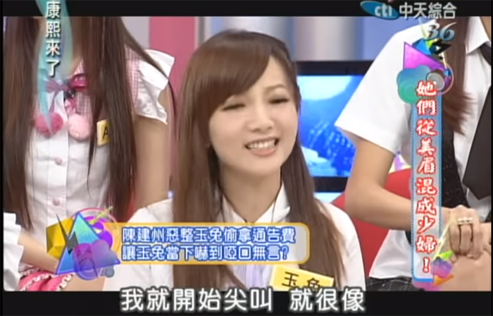 《我愛黑澀會》當時在台灣掀起一陣風潮,再加上黑人(陳建州)的幽默個性,更是替節目圈了不少粉絲。不過過去玉兔曾在《康熙》爆料,有一集因為被黑人惡整太誇張,甚至節目還沒有播出。當時黑人惡意栽贓她偷了其他人的通告費,讓她嚇到當場崩潰,直說:「他就是把我的人格拿來踐踏!」