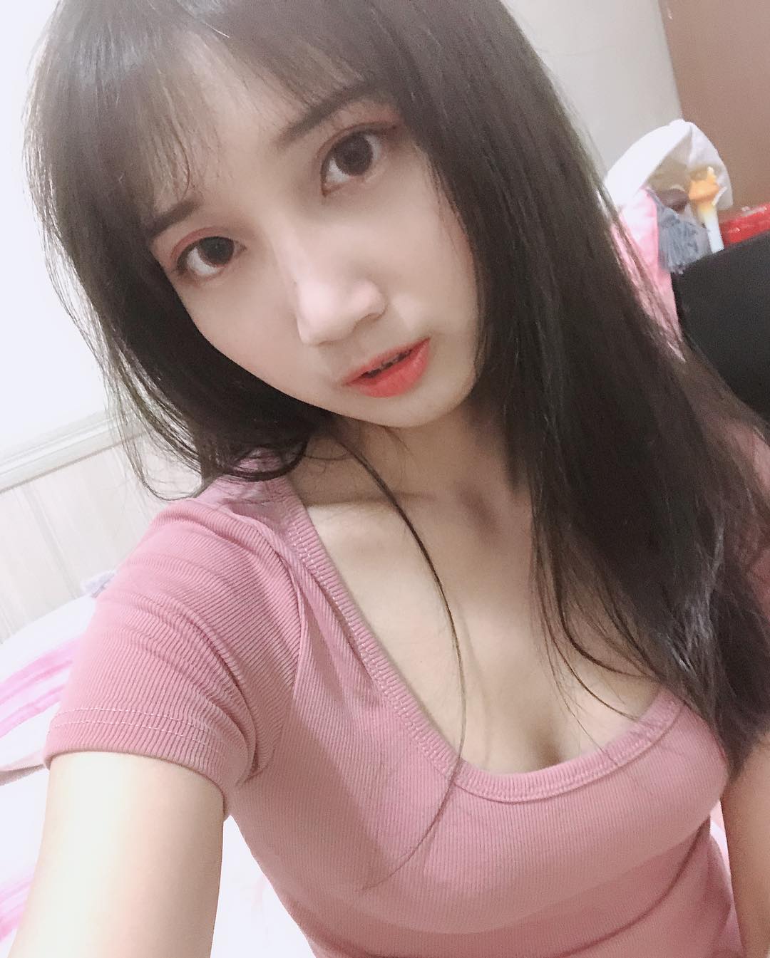 近日成員唯二的女團員之一ㄚㄚ「殷微帆」在個人IG上發佈一組照片,而她主要是在推薦粉絲們她身上好看的隱形眼鏡跟衣服,而她身穿一件粉紅色緊身圓領T恤,也因為領口較大的關係,ㄚㄚ胸前露出一條溝,也因為過去較少發出比較性感的照片,這次特別被網友們捕捉到她的「小心機」,紛紛留言:「原來妳也是挺胸的」、「其實不是衣服好看 而是被妳穿的好看」、「小心機」、「美炸天的ㄚㄚ」