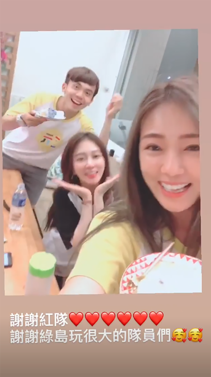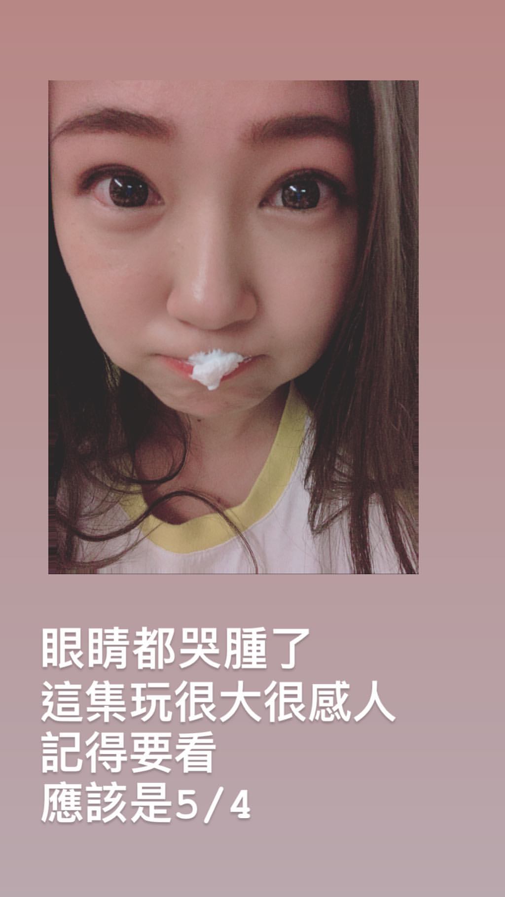 丫頭在IG限時動態PO出影片,只見她手上拿著蛋糕,眼睛似乎還泛著淚水,身後還有篠崎泫和黃豪平。不過在另一張照片中,丫頭卻紅著眼眶,甚至哭腫了眼睛,嘴唇上還沾著一點鮮奶油,她還寫著:「這集玩很大很感人,記得要看,應該是5/4(播出)。」