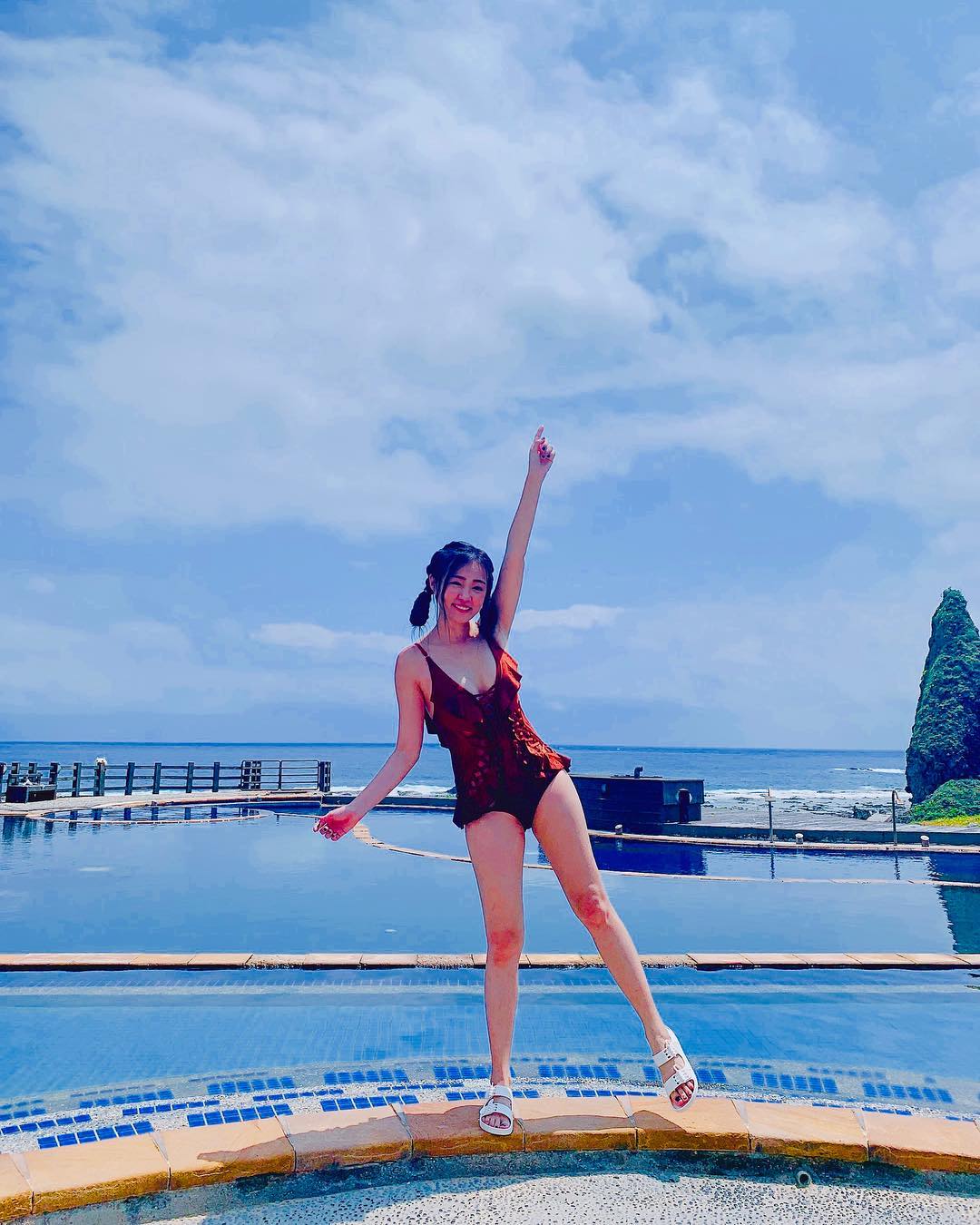 不僅如此,丫頭也在IG曬出錄影花絮,生日也不忘了要給粉絲們福利,「送上夏日消暑照,謝謝大家的生日祝福。」只見她綁著可愛的雙馬尾,身穿著一套橘紅色的連身泳裝,且胸前到腹部全都是簍空破洞設計,深邃的事業線加上若隱若現的白皙皮膚,讓網友們看了紛紛直說:「太性感啦這套」、「沒近看沒發現這套這麼辣!」
