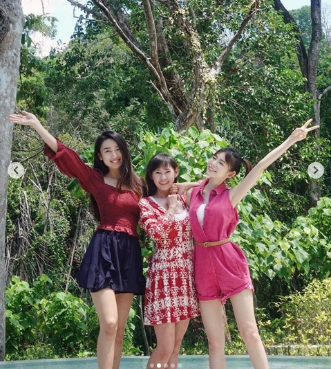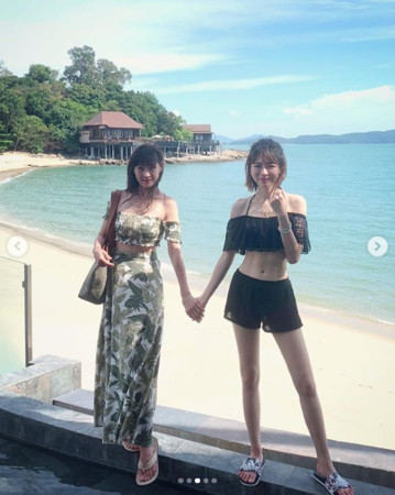 網友讚嘆這身材不科學時,林明禎母親也換上了同一套「中空裝」,細白皮膚加上曼妙曲線,完全看不出已是53歲的母親,完全不輸28歲的林明禎,兩人手牽手站在樓梯上拍照,宛如「好姊妹」,也可看出母女倆感情相當融洽。