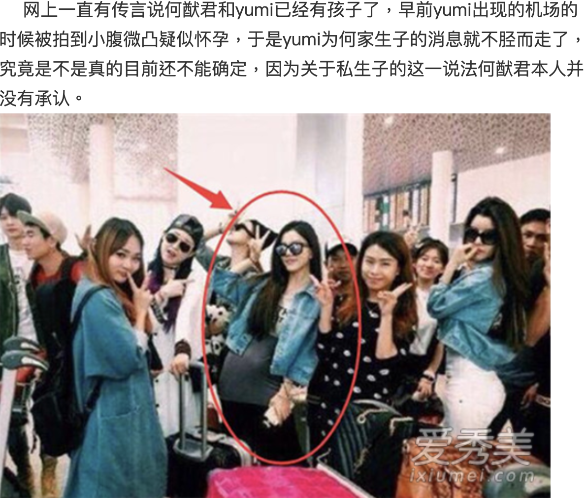 過去Yumi和賭王兒子的緋聞不斷地被網友們提起,甚至有報導提到過去Yumi傳出懷上私生子的傳言起因是因為一張她在機場和友人合照時,被捕捉到小腹明顯凸出,而被瘋傳是懷孕了,如今雙方都嚴正否認此消息,並呼籲大家不要再次炒作博眼球了。