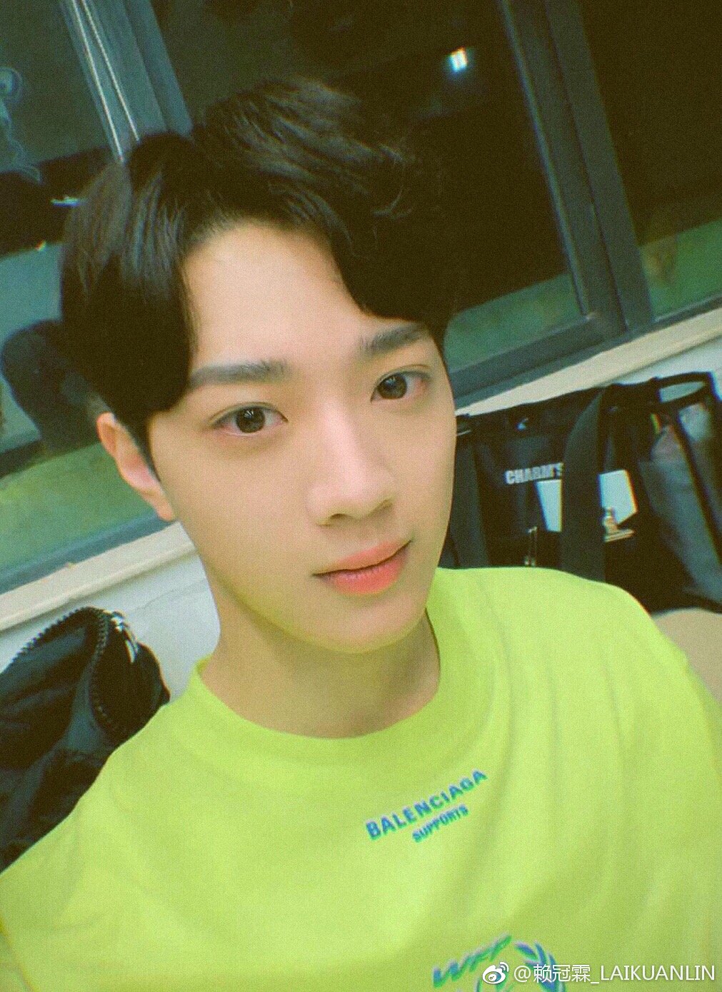 照片中賴冠霖梳起中分頭,並將瀏海往兩邊梳,粉絲看到後十分傻眼,紛紛表示,「為什麼要給帥哥搞這髮型,我殺了造型師」、「是我不夠時尚」、「哎呦喂~這中分造型!」。除了髮型外,造型也讓人滿臉問號,賴冠霖穿著大紅色背心,搭配休閒風的運動褲,褲裡還有牛仔褲,網友:「脫粉了」。