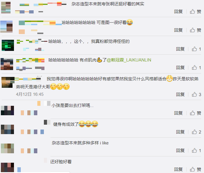雖然賴冠霖的新造型讓人想脫粉,但也有不少網友留言,「嘗試不同風格沒什麼不好的」、「雜誌造型本来就誇張啊還挺好看的其實」、「我寶貝什麼風格都適合」,並且認為此造型更凸顯賴冠霖身材好,肌肉不得了,直呼:「這臉蛋!這身材我可以!!!」。