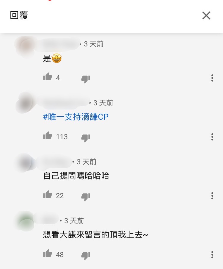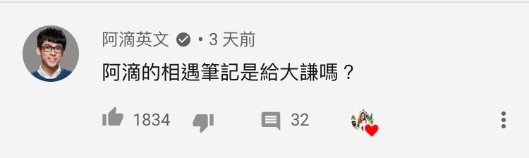 阿滴分享自己做過最浪漫的事情就是親手做了「相遇日記」,裡面寫了與暗戀對象相遇的日子以及發生的事情,並記錄自己當下的感受。事後阿滴自己在Blaire的影片下面留言「阿滴的相遇筆記是給大謙嗎?」讓支持滴謙CP的紛絲感到相當興奮。