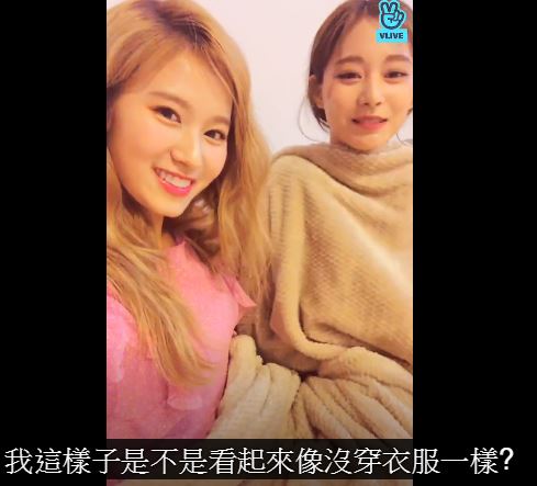 不過由於粉絲相當好奇子瑜當天拍攝的服裝,Sana還偷偷掀開子瑜肩膀上的毯子,露出背心樣式的上衣,接著子瑜還是大方把上半身的毯子拿開,沒想到毯子底下穿的竟然是一件深V造型的洋裝,子瑜一側身上圍也隱隱若現,不過保守的子瑜似乎也意識到有些走光,也趕緊將毛毯再度包回去,不過這一幕也讓粉絲直呼「子瑜真的很美」。
