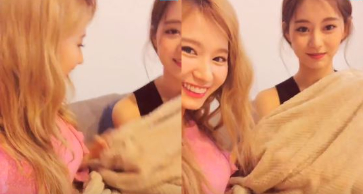 近期,女團TWIECE為時尚雜誌《Allure》拍攝5月號畫報,而12日,Sana和子瑜則透過工作空檔以VLIVE和粉絲互動。其中全身上下以毛毯包裹緊實的子瑜只露出一顆頭就入鏡,還開玩笑問粉絲「我這樣子是不是看起來沒穿衣服」,接著還展示下半身長至腳踝的洋裝,被Sana笑稱「是不是很像毯子」。