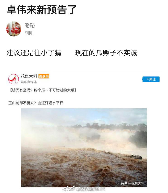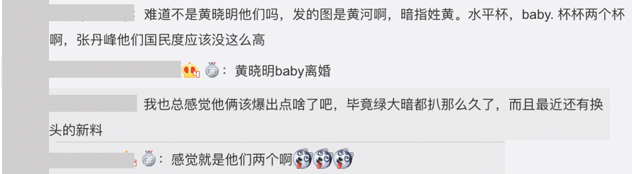 大陸知名娛樂爆料博主「卓偉」在本月月初時,發了一張圖預告大陸娛樂圈將會有驚人的大事發生,而在當時許多網友紛紛在底下猜測是不是Angelababy和黃曉明,卓偉發了兩張圖分別是洪水和紅色的石頭,並寫下:「玉山前卻不復來?曲江汀瀅水平杯」,而該名網友也解讀為:「難道不是黃曉明他們嗎,發的圖是黃河啊,暗指姓黃。水平杯,baby」,但幾日後證實並非黃曉明與Angelababy。但近日網友不斷瘋傳鄧倫和Angelababy有不倫戀情,再度引發熱議。