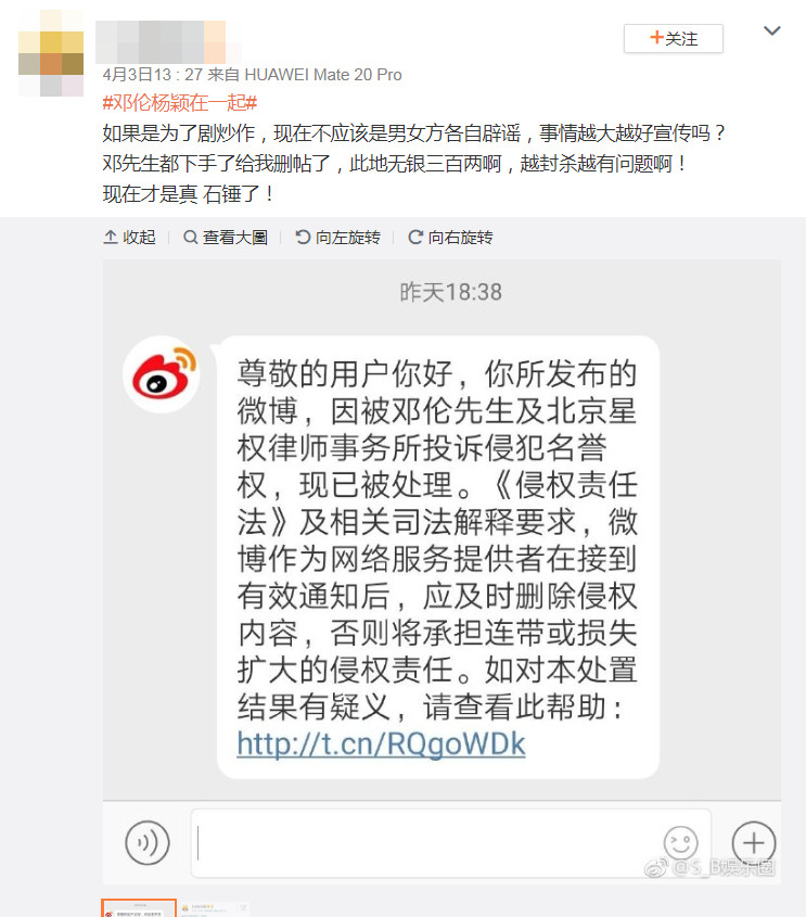 在3月底時,微博上不斷瘋傳Angelababy和鄧倫有一腿,甚至還傳出兩人車X,過去Angelababy和鄧倫曾合拍電視劇《我的真朋友》,如今該劇尚未播出,各種荒謬的傳言卻不斷在網上被瘋傳,而散佈此消息的微博博主也被鄧倫方檢舉是侵犯名譽,就有網友認為鄧倫方這個舉動根本就是「此地無銀三百兩」,越是封殺這種謠言就越有問題。