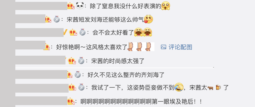 而網友們見狀這次雜誌替宋茜拍的一系列時尚照片後,紛紛留言驚呼:「宋茜的時尚感太強了」、「百變的宋茜!有一次的新突破!」、「好驚艷啊~這風格太喜歡了」、「會不會太好看了」、「宋茜短髮劉海還能夠這麼帥氣」、「我試了一下,這姿勢臣妾做不到」,也有網友看見這髮型後,認為她的造型很像「埃及艷后」,再度驚艷許多網友。